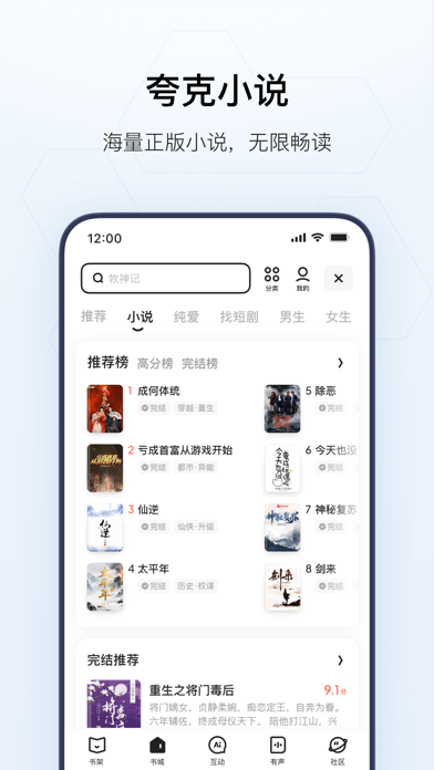 AI 听书: 多音色自然朗读,声音流畅真实,沉浸体验更生动。