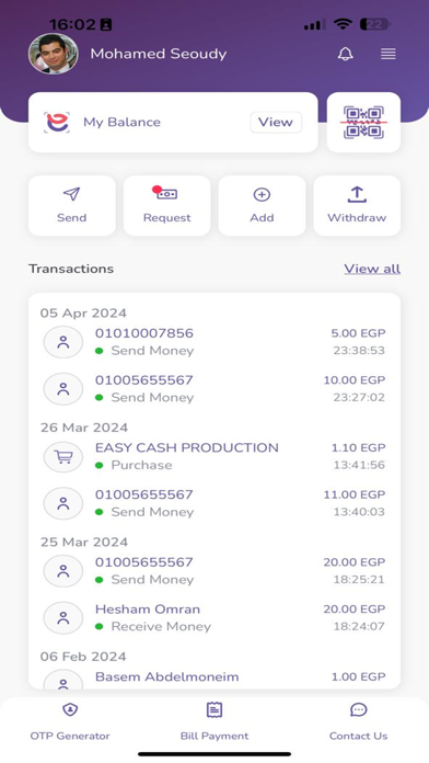 1- Send money “person to person” - you can send an amount of money to any wallet inside Egypt hassle-free.