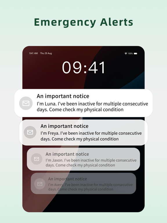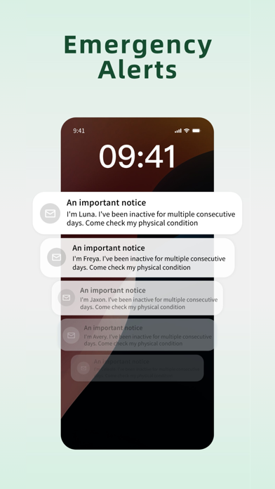 Set up one emergency contact (family member or friend) in advance. If you haven’t checked in via the app for consecutive days, the system will automatically send an email to them the next day to promptly convey safety anomalies and gain critical intervention time for potential risks